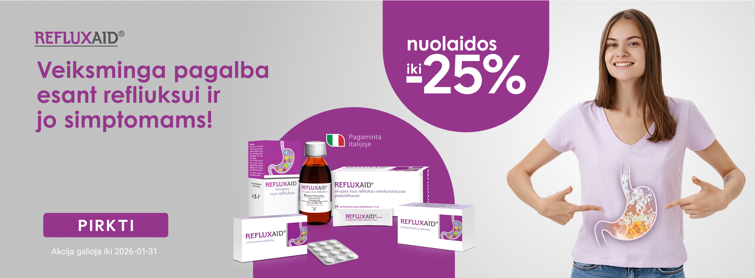 Labai džiaugiuosi, kad gydytoja rekomendavo išbandyti Refluxaid. Jis tikrai padėjo kovojant su refliuksu – dingo nemalonus deginimas ir atpylinėjimas po valgio. Rekomenduoju!