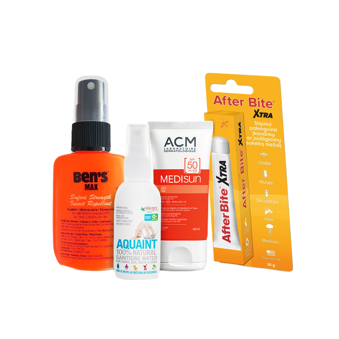 Ben’s MAX, purškiamas skystis, 37 ml + AQUAINT® BABY NATURAL, 50 ml + After Bite® XTRA gelis, 20 g + MEDISUN gelis SPF 50 UVA + UVB, 40 ml